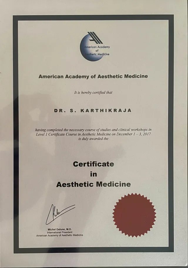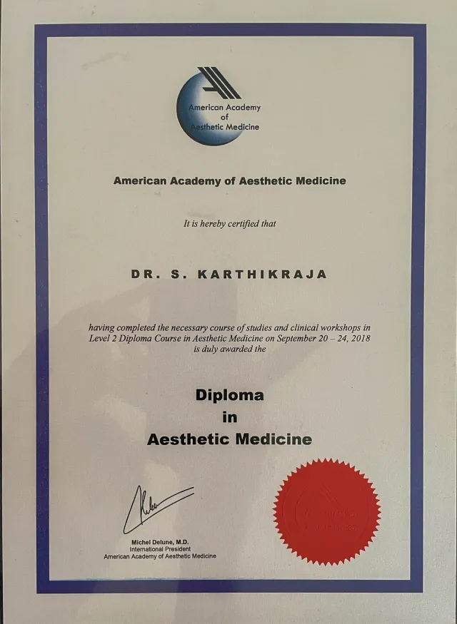 Dr.S.Karthikraja MD DVL is a Medical Council Registered Dermatologist. After completing his MBBS he got extensive training in Emergency medicine and Critical care medicine, he served as a casualty medical officer in a leading hospital. After Completing MD in Dermatology Venereology and Leprosy, also secured a “Diploma in Aesthetic Medicine” from the American Academy of Aesthetic Medicine (USA).